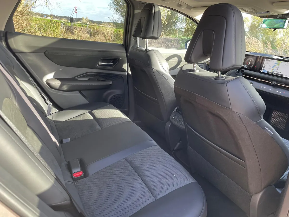 De Nissan Ariya blijft je verrassen zodra je plaatsneemt in de auto. Deze EV is namelijk bijzonder rijk uitgerust en de afwerking is TOP. Het interieur van deze auto is subliem, je ziet echt dat er gebruik is gemaakt van hoogwaardige materialen. Maar dat is nog niet alles! Iedere rit is uiterst comfortabel dankzij de vele opties zoals stuur- en stoelverwarming, achteruitrijcamera, accuverwarming, verschillende rijhulpsystemen etc. Bovendien kun je de hele middenconsole naar voren en achter verplaatsen. Wat ons betreft best een toffe feature!